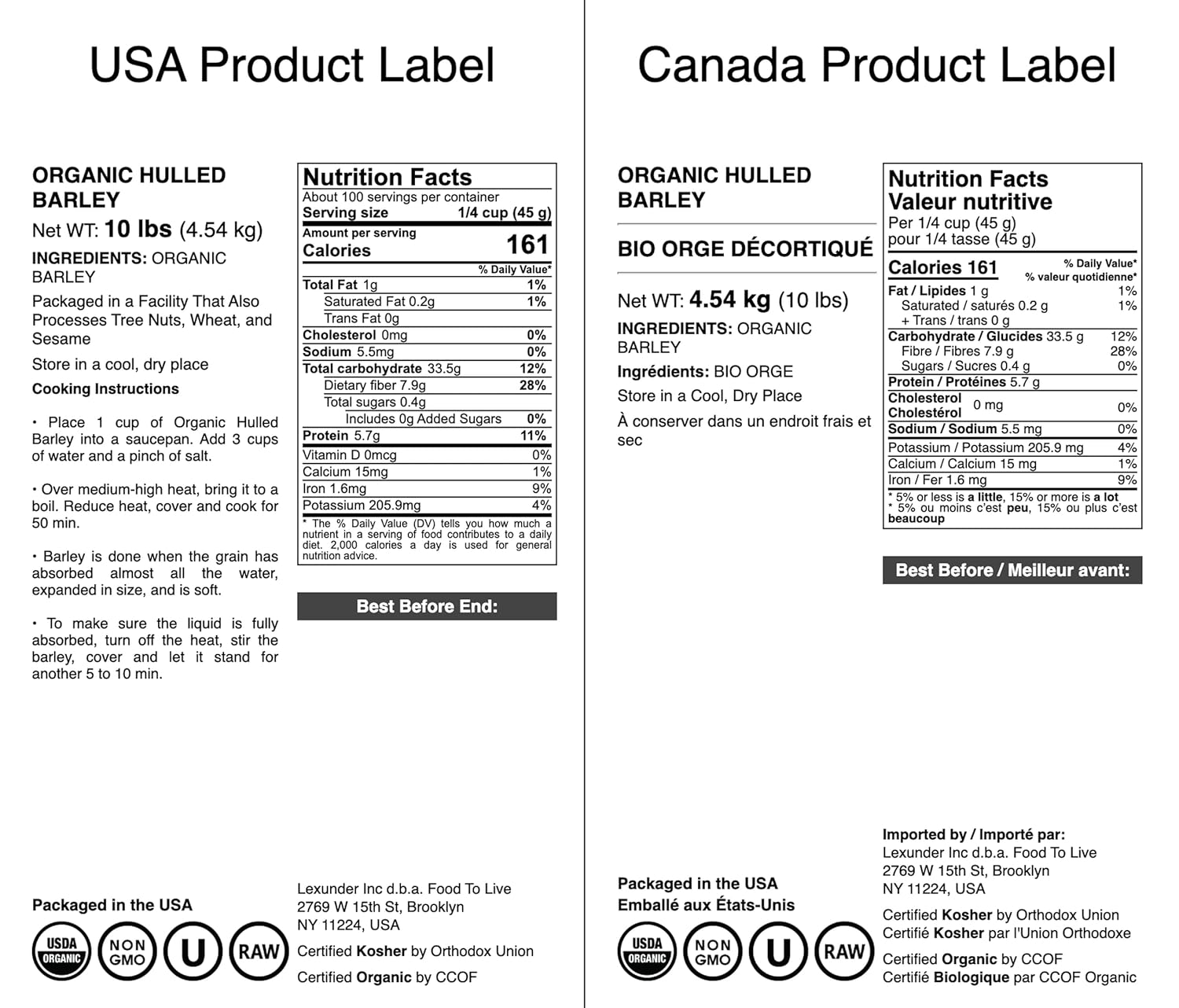 | Brand Name | Food to Live |